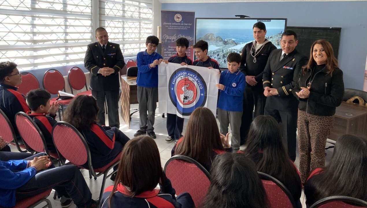 En la oportunidad el establecimiento recibió el pabellón del programa educativo “Embajadores Antárticos”, esto tras haber realizado una videoconferencia con la Base Naval Antártica “Capitán Arturo Prat” y haber desarrollado una actividad de conocimiento de la historia antártica nacional.