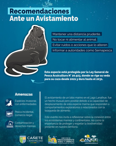 El cuidado y respeto por la fauna silvestre es una responsabilidad compartida. Proteger nuestros ecosistemas permite conservar la riqueza natural de la provincia y seguir disfrutando de entornos como el Lago Lanalhue de manera segura y sustentable.