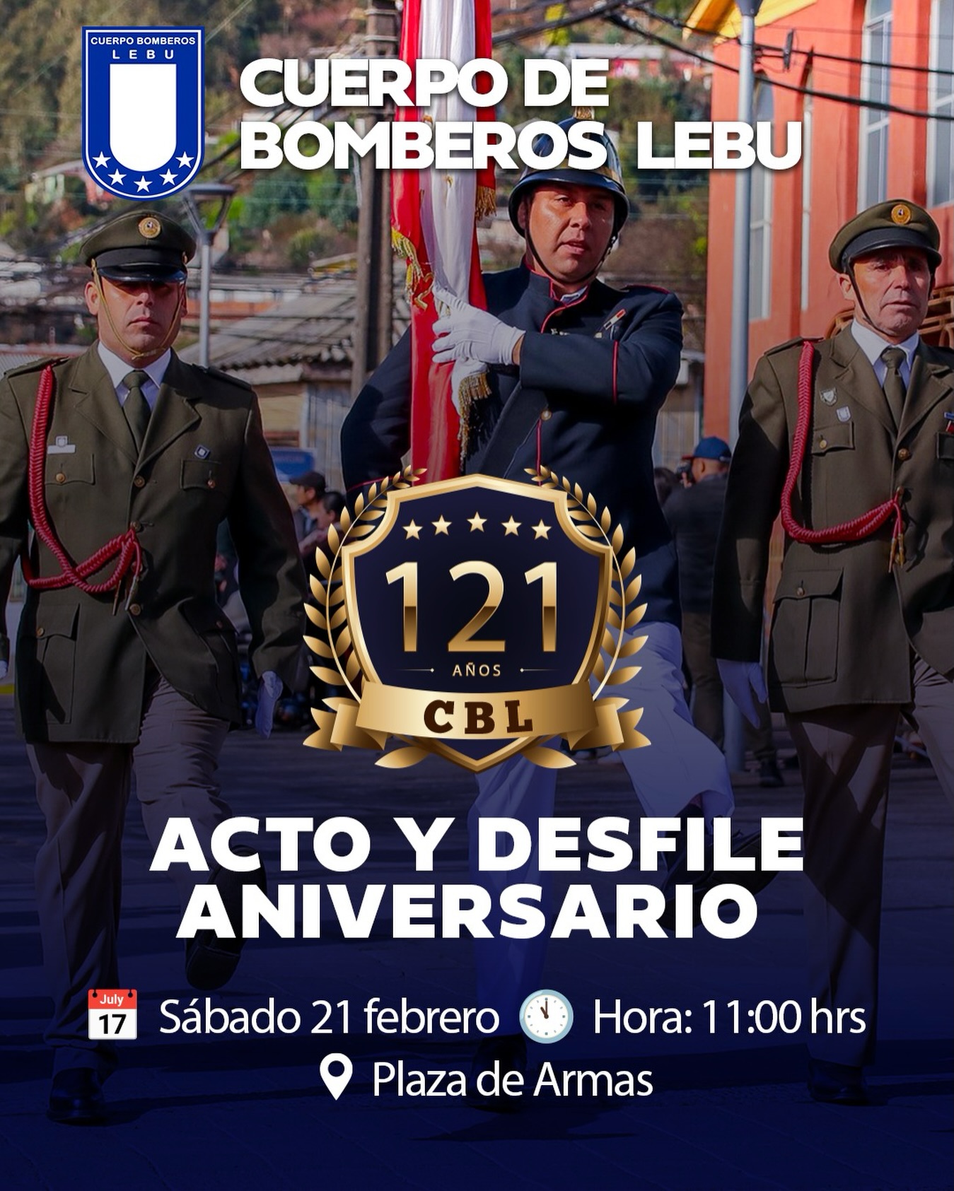 Cuerpo de Bomberos de Lebu invita a ceremonia por sus 121 años