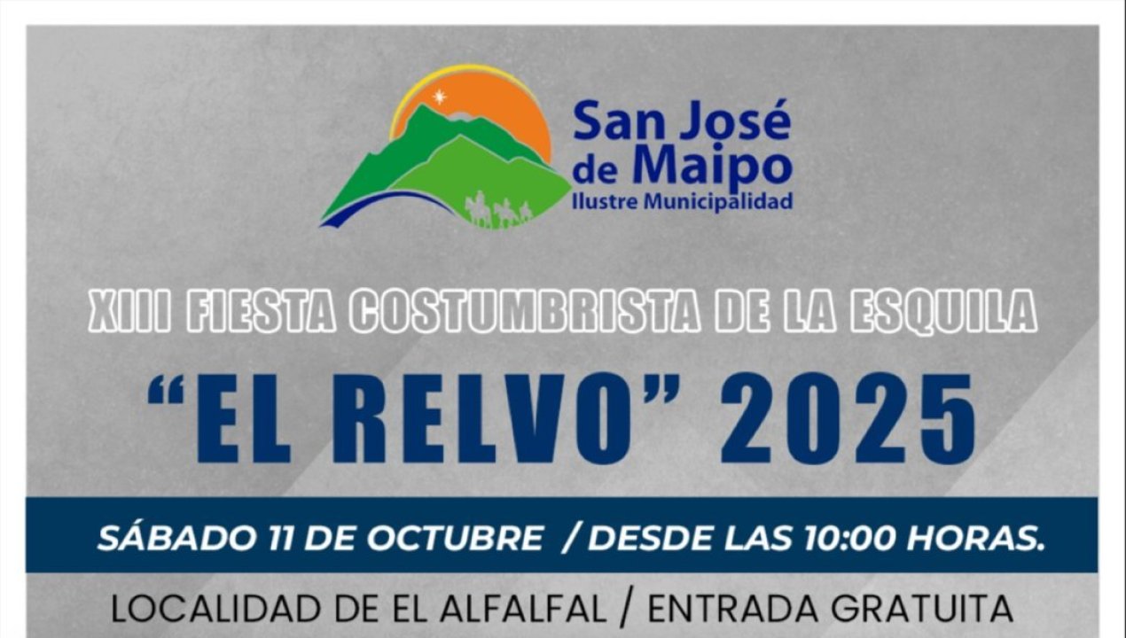 Luego de haber sido suspendida por el frente meteorológico del fin de semana pasado, la esperada Fiesta de la Esquila El Relvo 2025 finalmente se realizará este sábado 11 de octubre en el sector de El Relvo, San José de Maipo.